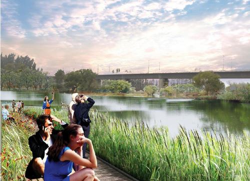 依托現狀地形地貌,打造親水平臺,結合用地規劃打造條狀小游園。